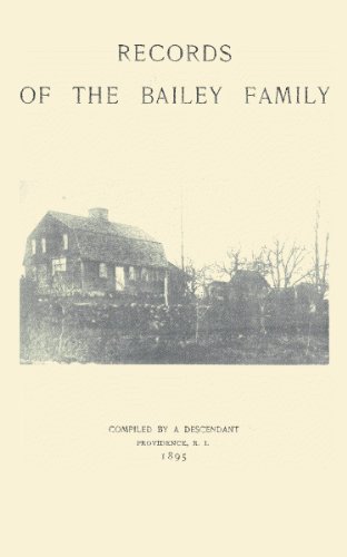 Facsimile Reprint of the classic book Records of the Bailey Family, Descendants of William Bailey of Newport, R. I., Chiefly in the Line of His Son, Hugh Bailey of East Greenwich, R. I. originally published in 1895 .